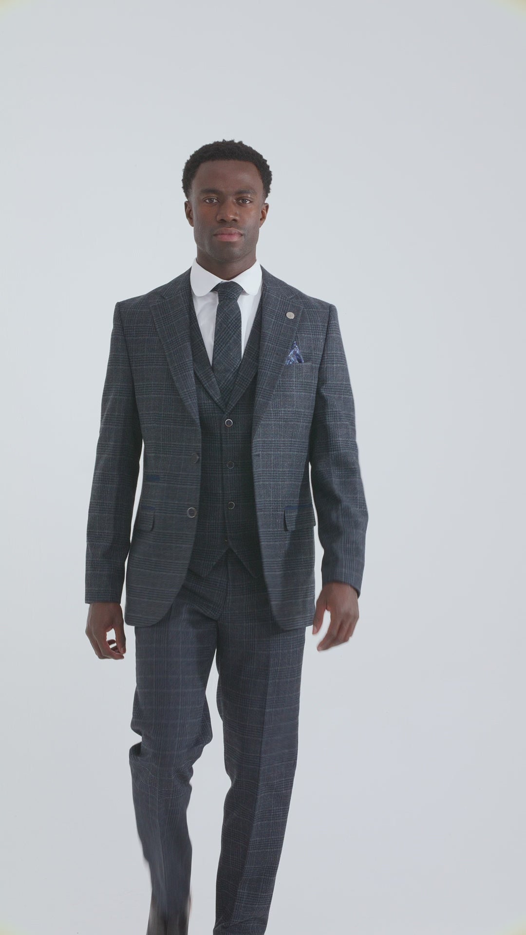 Blåt tartanternet 3-delt jakkesæt til mænd