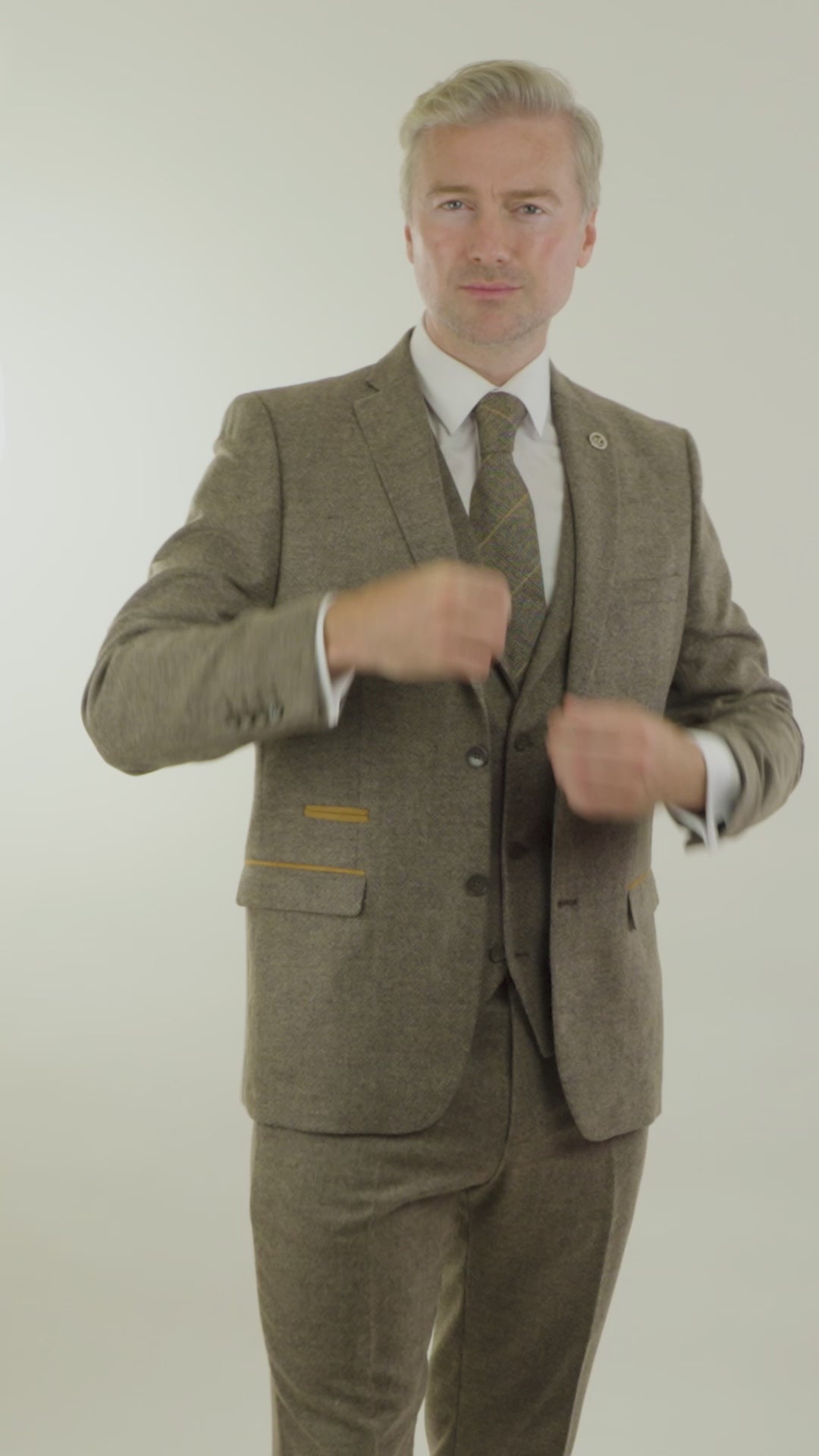Egebrun sildebensfarvet tweed 3-delt jakkesæt