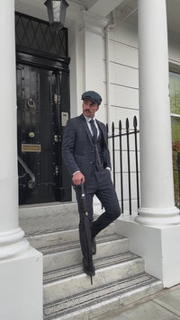 Herre 3-delt jakkesæt i uld, tweed, marineblå, brun, tern, 1920'er Gatsby
