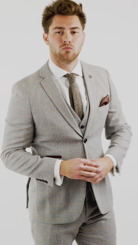 Herre 3-delt tweed ternet jakkesæt - Cremefarvet