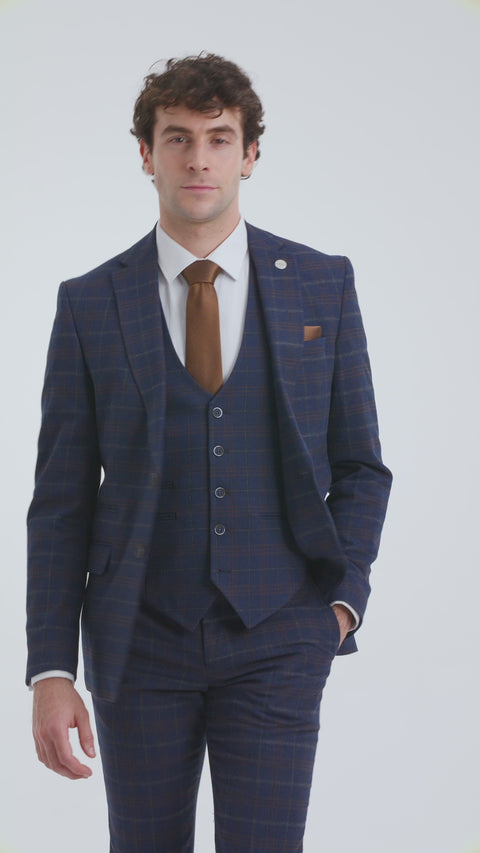 Herre marineblå ternet 3-delt jakkesæt - Paul Andrew Kenneth