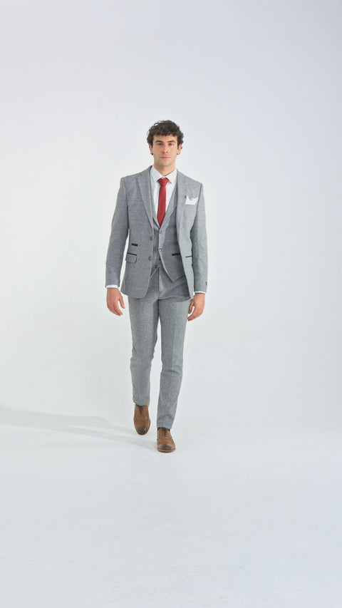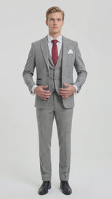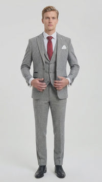 Lysegråt 3-delt tweed-sildebensmønster til mænd - STZ11